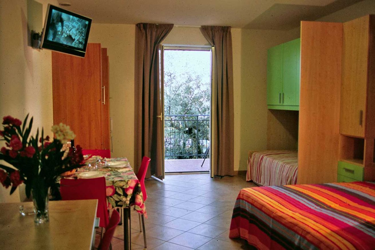Appartamenti in muratura (30 mq 3 posti letto con balcone vista mare, per la sua tipologia) angolo cottura attrezzato, bagno completo di cabina doccia e asciugacapelli, tv-sat, cassetta di sicurezza e telefono in dotazione, aria condizionata, balcone.