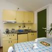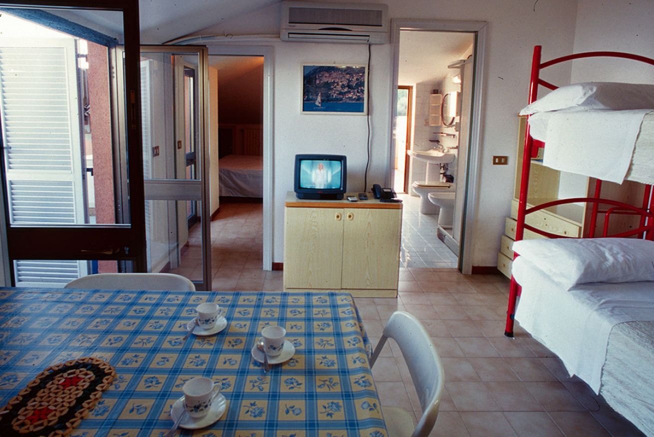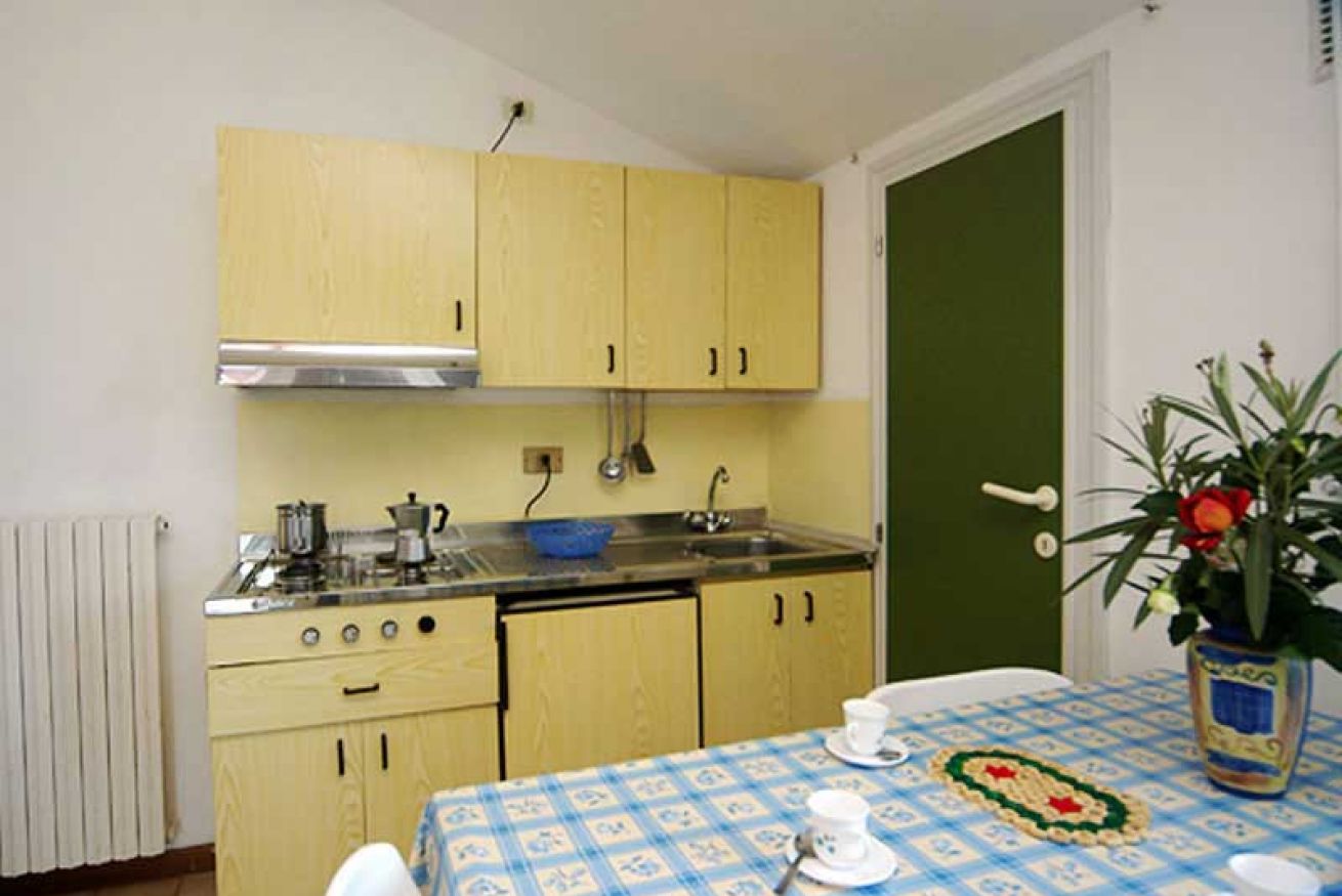 Appartamento 4/5 posti letto (40 mq) in muratura, (possibilità vista mare, aria condizionata), completamente arredato, composto da camera matrimoniale, soggiorno-pranzo più letto a castello, angolo cottura completamente arredato - lavello, frigo, stoviglie, ecc., bagno (WC, lavabo, doccia, water e bidé, asciugacapelli), cassetta di sicurezza, telefono, Tv-sat, ampia terrazza arredata.